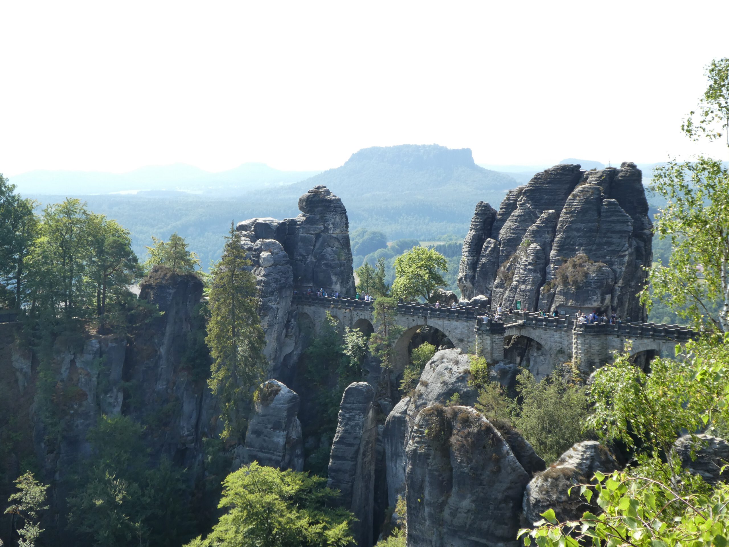 Am letzten Tag besuchten wir zudem die Felsenburg Neurathen und die Bastei, zusammen die bekanntesten Sehenswürdigkeiten der gesamten Region: Mehr als 100 Meter über der Elbe thronte hier vor 800 Jahren eine stolze Burg direkt an den Felsabhängen. Wer sich mit voll beladenem Rucksack von Rathen aus auf den Weg den Berg hoch gemacht hat, kann sich vorstellen, was für unglaubliche Mühen der Bau der Burg bereitet haben muss. Auch die Basteibrücke, eines der zusammen mit der Semperoper meistfotografierten Bauwerke Sachsens, konnten wir besichtigen. Sie wurde vor etwas weniger als 200 Jahren von König Friedrich August von Sachsen errichtet.