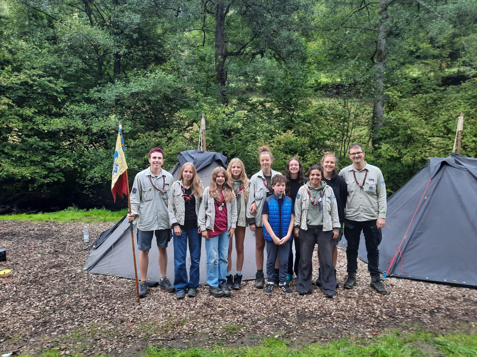 Das Großfahrtenabschlusstreffen vom RJB fand dieses Jahr in Hesseneck Schöllenbach statt. Mit einem kleinen aber feinen Lagerplatz direkt neben dem Bach und einem kleinen See in der Nähe, ließ sich das diesjährige wandern gut ausklingen. Neben dem Geländespiel „Capture the flag“, bei dem es galt verschiedene Schätze im Wald zu erringen, gab es einige interessante Workshops zu besuchen. Manche bauten ein Floss und fuhren damit über den See, andere bemalten Jutebeutel, wiederum andere erfuhren einiges über Tee oder lernten, wie man demonstriert. Die Abende endeten wie so häufig mit Singerrunden, bei denen alle, durch Snacks und Punsch gestärkt, laut mitsangen.