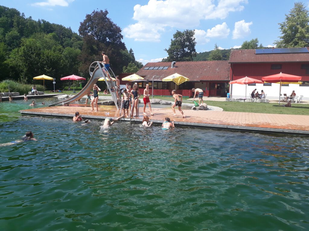 Am nächsten Tag hatten wir eine „Für den Platz-Aktion“, bei der wir Holz umhertragen mussten und Vogelhäuschen aufhängen durften. Danach hatten wir den Tag frei zum ausruhen und spielen. Auch mit den vielen anderen Pfadfindern, die zeitgleich auf dem Platz waren und teilweise sogar aus dem Ausland kamen, konnten wir uns vertraut machen. Mittwochs gingen viele noch einmal mit ins Schwimmbad.